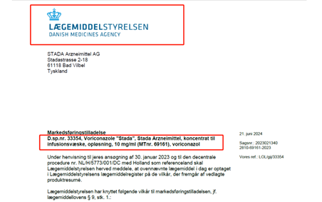 2024年第18张国际批件,改良新药伏立康唑注射液获丹麦上市许可!伟德国际1946官网伏立康唑注射剂型已获批国家市场份额超全球65%