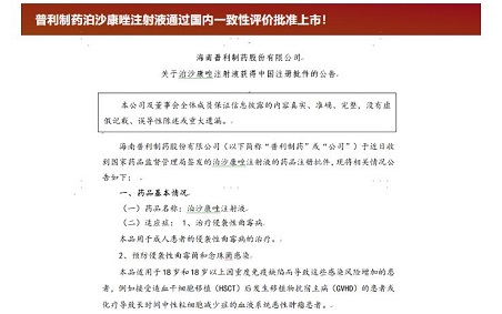 中美双报的泊沙康唑注射液获国家药品监督管理局NMPA批准上市!