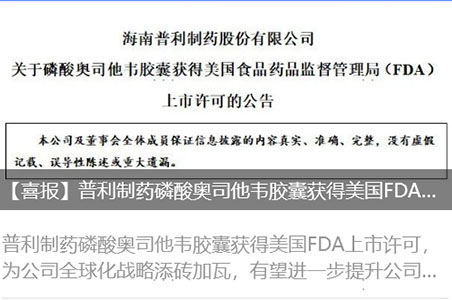 伟德国际1946官网磷酸奥司他韦胶囊获得美国FDA上市许可!