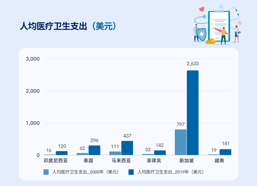 数达2.79亿人,65岁以上的人口数量超过1700万,占比5.95%。东南亚地区的医疗刚需与保健需求在较长时期内将保持稳健增长。